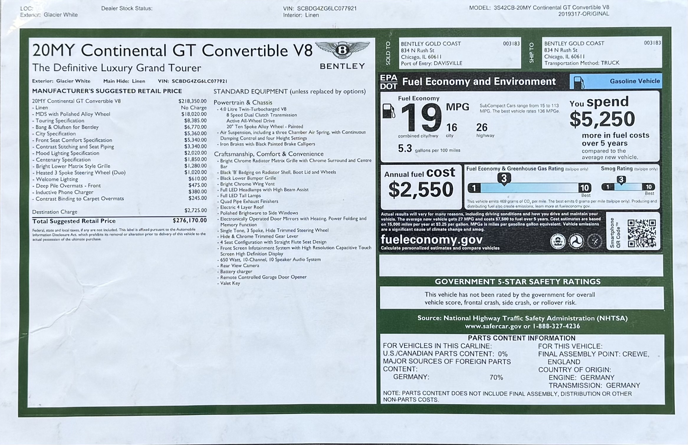 2020 Bentley Continental GT Convertible presented by Bentley Houston. Glacier White Exterior with Linen and Imperial Blue Interior, this GTC features MDS with Polished Alloy Wheels, Touring Specification, City Specification, Centenary Specification, Bright Lower Matrix Style Grille, Welcome Lighting, Bang and Olufsen for Bentley, Front Seat Comfort Specification, Contrast Stitching and Seat Piping, Mood Lighting Specification, Heated 3 Spoke Steering Wheel, Deep Pile Overmats - Front, Inductive Phone Charger and Contrast Binding to Carpet Overmats. This vehicle has already received our premium Ceramic Coating and Paint Correction treatment - an exclusive package professionally applied and included with your purchaseAbout Post Oak Motor Cars:Post Oak Motor Cars, a Fertitta Automotive Company, proudly represents Bentley, Rolls-Royce Motor Cars Houston, Bugatti, Karma, Lotus, Zenvo, Brabus, Hennessey, and Vintage Modern. Located in the prestigious Post Oak Complex in Uptown Houston, our flagship showroom offers an immersive luxury experience - surrounded by fine dining, designer fashion, luxury spa, and elegant accommodations. We also welcome you to our Lotus of The Woodlands showroom, located at 1501 Lake Robbins Drive. Our state-of-the-art service center and accessories boutique are supported by Certified Brand Representatives who can assist with:• Financing & lease options (including Crypto)• Enclosed nationwide transport• Trade-in valuations and appraisal services Whether you're browsing or ready to drive, our team is here to assist you. Visit us or call to schedule your personalized test drive today. Why Buy from Post Oak Motor Cars:• Texas #1 Selling Rolls-Royce Retailer• Texas #1 Selling Bentley Retailer• Texas' Only Authorized Retailer for Bugatti, Zenvo, and Vintage Modern