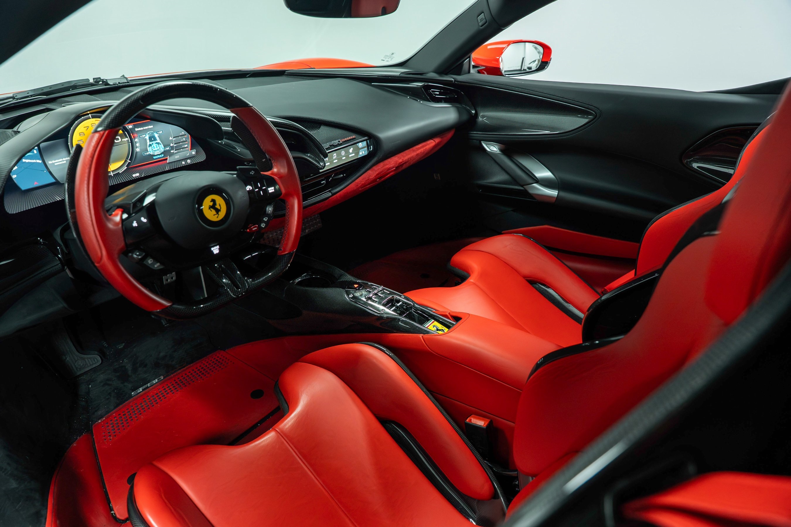 2021 Ferrari SF90 Stradale presented by Post Oak Motor Cars. Rosso Scuderia with Rosso Ferrari interior, this SF90 features 20" Dark Forged Wheels with Yellow Brake Calipers and Titanium Wheel Stud Bolts, USA Spec AFS System, Suspension Lifter, Front and Rear Parking Sensors, Scuderia Ferrari Fender Shields, Black Tailpipe Tips, Side Air Splitter and Rear Diffuser in Carbon Fiber, Driver Zone + LEDs, Instrument Cover, Rear Shelf, Dash Inserts, Door Panels, Upper Center Console Trim and Tunnel Trim all in Carbon Fiber, Large Size Carbon Fiber Racing Seats with Racing Seat Lifter and Cavallino Stitched on Headrests, Premium Hi-Fi Audio System, Colored Seatbelts in Rosso, Colored Interior Details in Nero, Colored Mats with Logo, Electrochromic Rear-View Mirror, Leather Headliner in Nero and Colored Steering Wheel in Rosso.This vehicle has already received our premium Paint Correction and Ceramic Coating treatment - an exclusive package professionally applied and included with your purchase.About Post Oak Motor Cars:Post Oak Motor Cars, a Fertitta Automotive Company, proudly represents Bentley, Rolls-Royce Motor Cars Houston, Bugatti, Karma, Lotus, Zenvo, Brabus, Hennessey, and Vintage Modern. Located in the prestigious Post Oak Complex in Uptown Houston, our flagship showroom offers an immersive luxury experience - surrounded by fine dining, designer fashion, luxury spa, and elegant accommodations. We also welcome you to our Lotus of The Woodlands showroom, located at 1501 Lake Robbins Drive. Our state-of-the-art service center and accessories boutique are supported by Certified Brand Representatives who can assist with:• Financing & lease options (including Crypto)• Enclosed nationwide transport• Trade-in valuations and appraisal services Whether you're browsing or ready to drive, our team is here to assist you. Visit us or call to schedule your personalized test drive today. Why Buy from Post Oak Motor Cars:• Texas #1 Selling Rolls-Royce Retailer• Texas #1 Selling Bentley Retailer • Texas' Only Authorized Retailer for Bugatti, Zenvo, and Vintage Modern